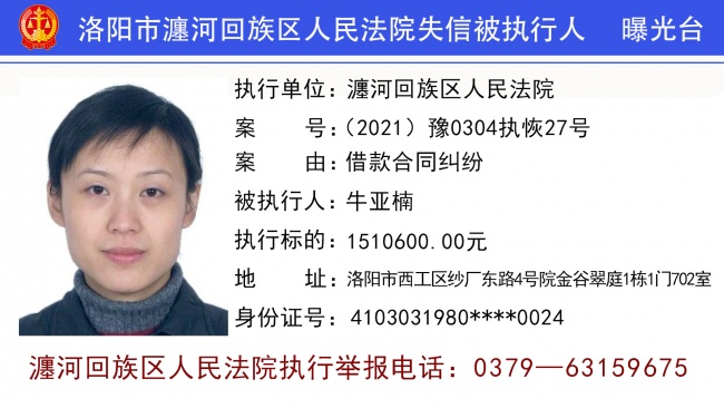 瀍河区法院最新曝光22名失信人(第二期)