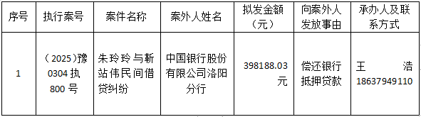 洛阳市瀍河回族区人民法院执行局关于向案外人发放案款案件的公示