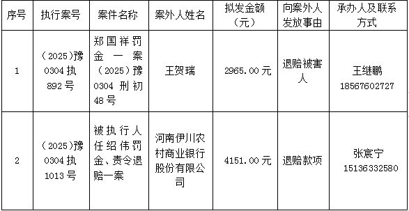 洛阳市瀍河回族区人民法院执行局关于向案外人发放案款案件的公示