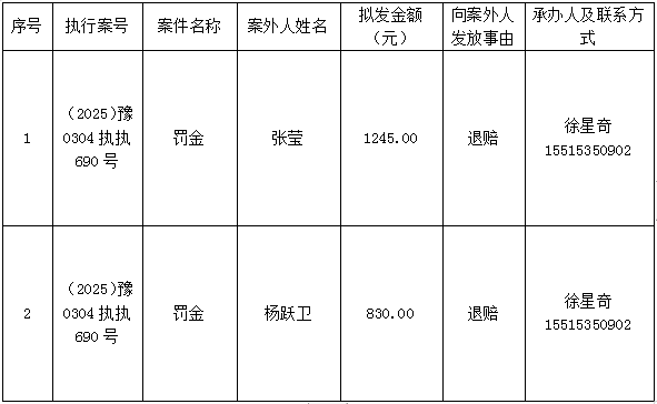 洛阳市瀍河回族区人民法院执行局关于向案外人发放案款案件的公示