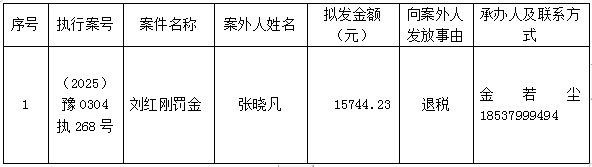 洛阳市瀍河回族区人民法院执行局关于向案外人发放案款案件的公示