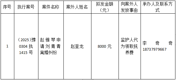 洛阳市瀍河回族区人民法院执行局关于向案外人发放案款案件的公示