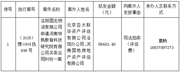 洛阳市瀍河回族区人民法院执行局关于向案外人发放案款案件的公示