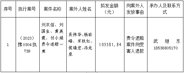洛阳市瀍河回族区人民法院执行局关于向案外人发放案款案件的公示