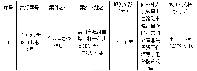 洛阳市瀍河回族区人民法院执行局关于向案外人发放案款案件的公示