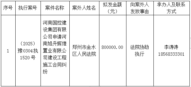 洛阳市瀍河回族区人民法院执行局关于向案外人发放案款案件的公示