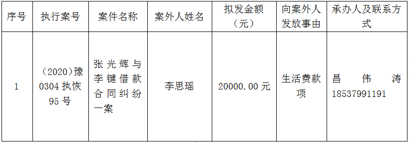 洛阳市瀍河回族区人民法院执行局关于向案外人发放案款案件的公示